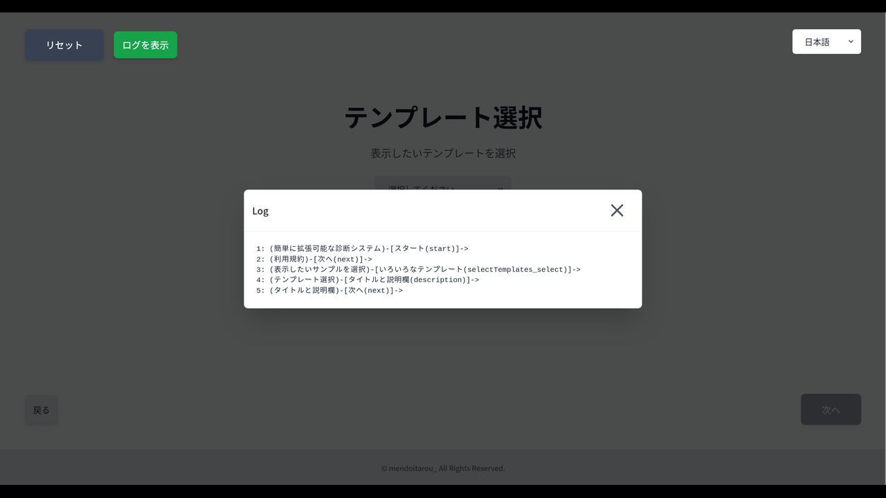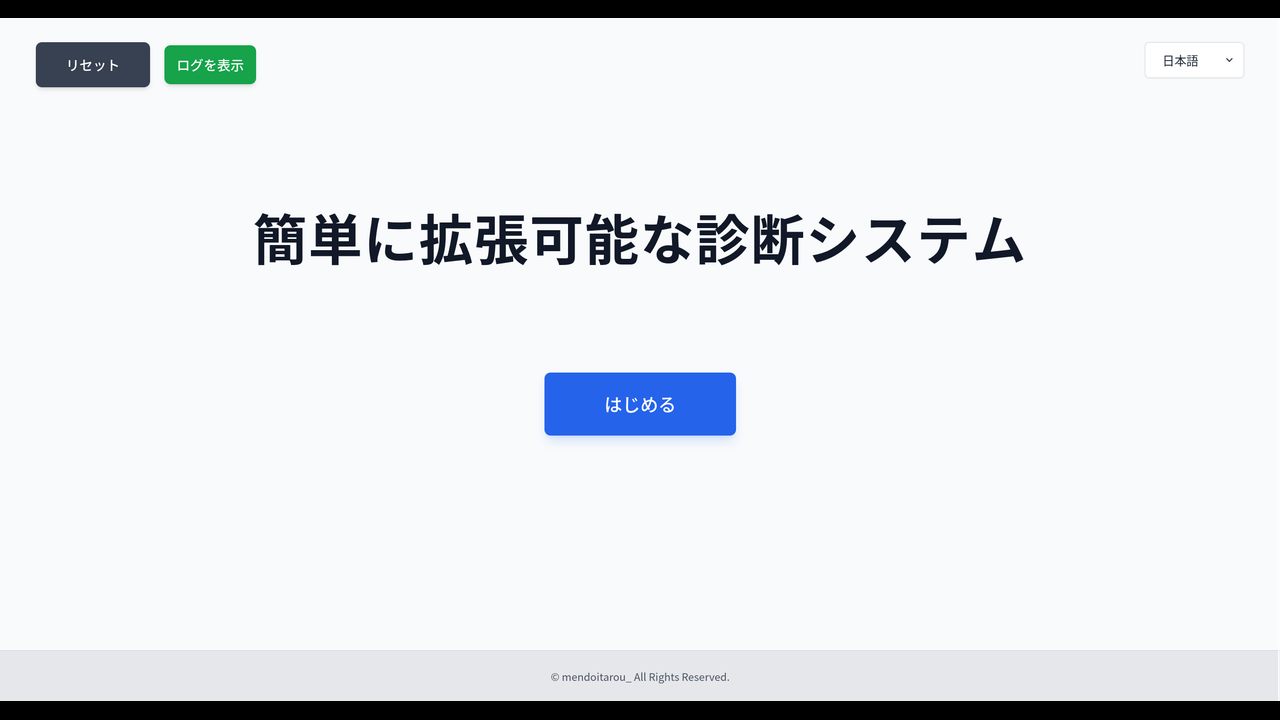 テンプレート方式を採用することで、簡単に拡張可能な選択肢方式の診断システムです。